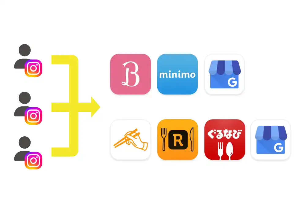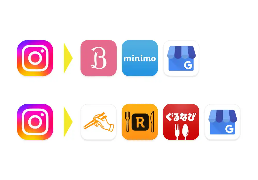 - Googleビジネスプロフィールの他、ホットペッパービューティー、minimoが対象となります。