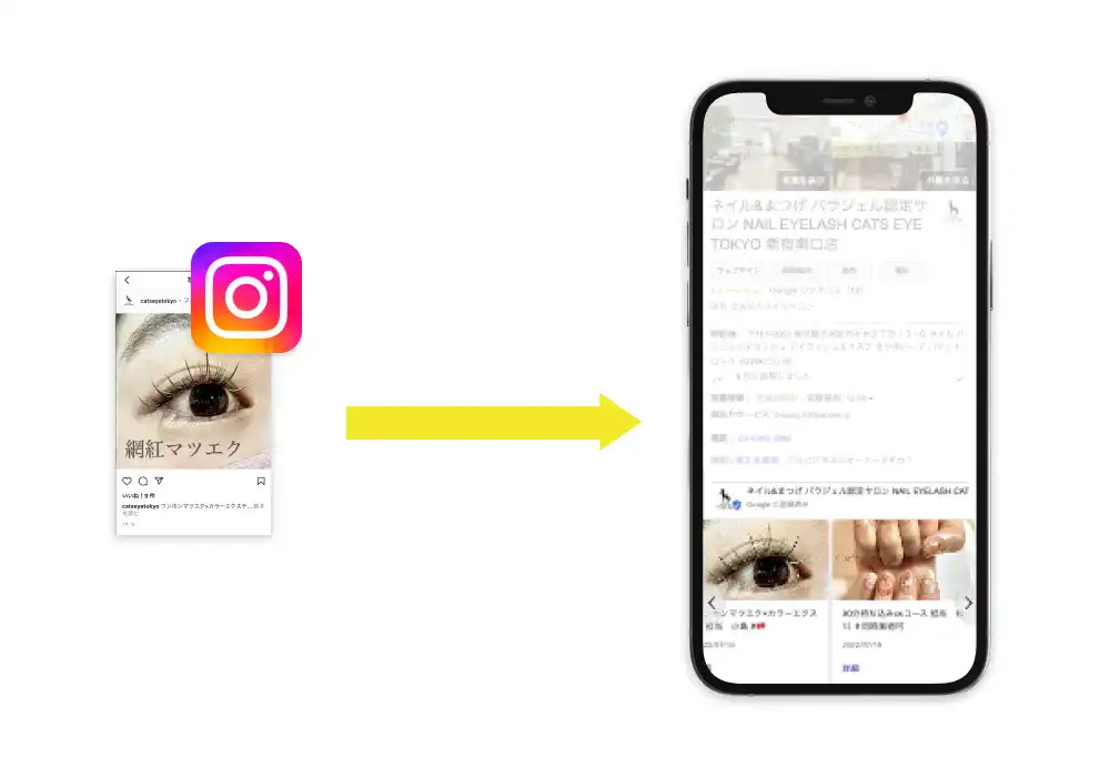 店舗スタッフがインスタに投稿するだけで、ホットペッパービューティーやミニモ、グーグルビジネスプロフィールへ自動連携。すべて弊社で設定を行います。